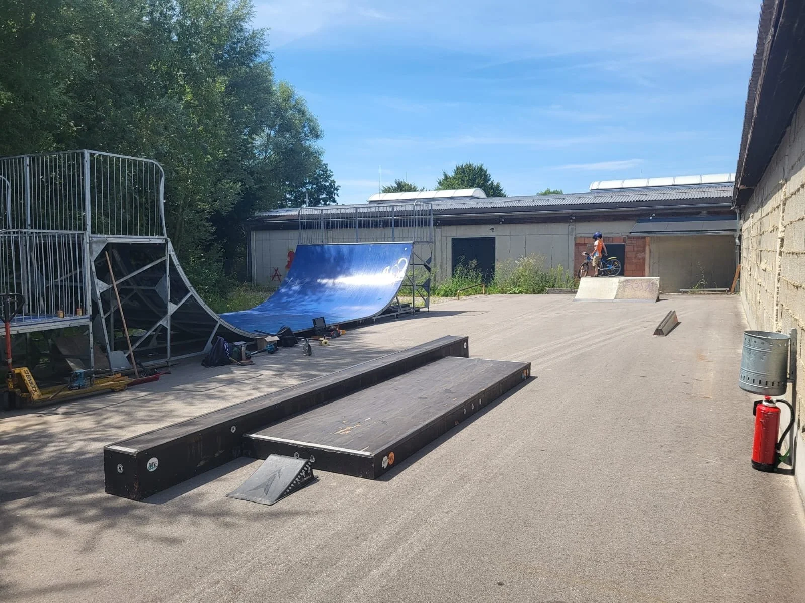 Die Gemeinde Massing stellte uns parallel eine große Teerfläche zur Verfügung. Wir als Verein konnten alte Obstacles vom Winhöringer Skatepark organisieren und mit Unterstützung des Bauhofs Massing wieder aufbereiten. Gemeinsam haben wir die Elemente gereinigt, repariert und neu aufgebaut.